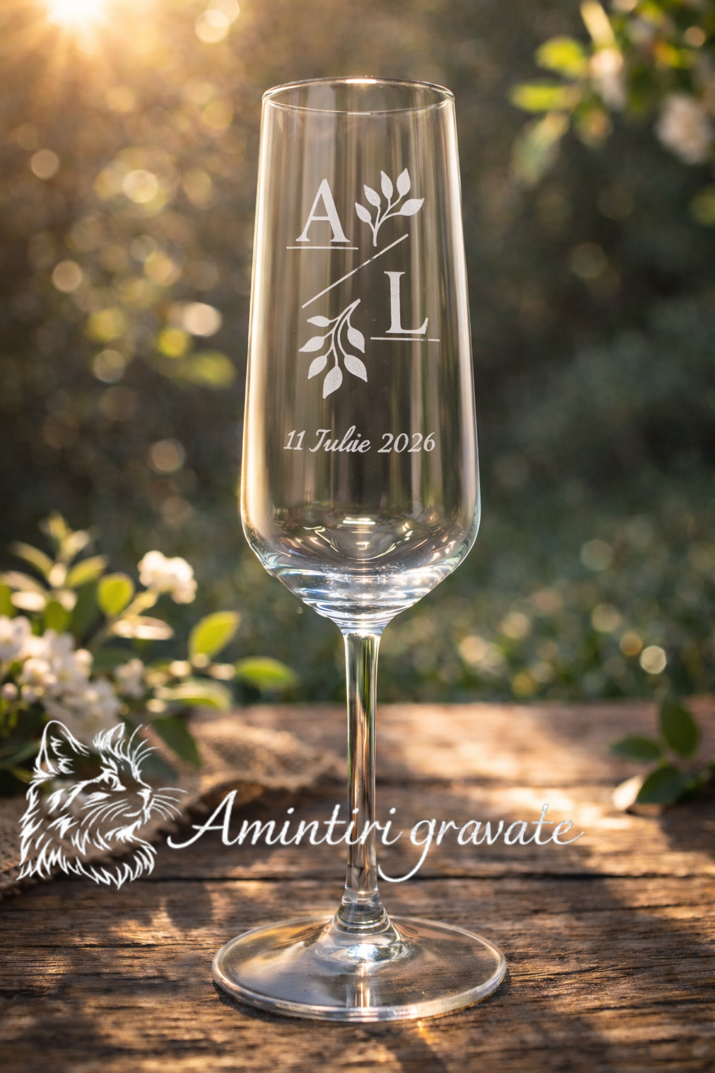 Pahar Șampanie Gravat cu Inițiale Minimaliste – Nuntă